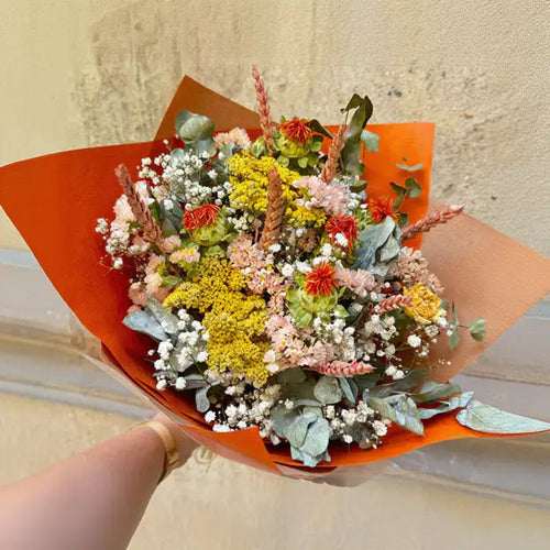 El diseño es referencial. Puede variar según las flores de temporada disponibles, manteniendo siempre la misma categoría de color, estilo y esencia del ramo.